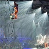 Sie steigt als letzte von ihrem Posten hinunter. Für die Besucher nicht sichtbar, warten die Schauspieler draussen auf ihren Einsatz. Und wenn der Einsatz beendet ist, rennen sie um die Halle um wieder in anderer Funktion auf den Wagen aufzuspringen und durch die Halle gezogen zu werden.