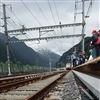 Zwischen modernen Betriebsgebäuden wird das Krokodil verschoben. Die Dampflokomotive rattert vorbei und fährt einige 100 Meter. Göschenen ist weit weg.