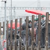 In Pollegio angekommen, steht am Ende des Tunnels, schön einzäunt der Bohrkopf. In Luzern beim Verkehrshaus, kann jedes Kind das wil auf dem Bohrkopf rumklettern, heute ist alles versperrt. "Die Gleise sind ja richtig rostig" sagt einer beim Aussteigen, da sind noch nicht viele Züge darüber gefahren. Das wird sich bald ändern.