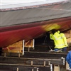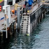 Der ganze Vorgang dauert heute fast drei Stunden, bis das Schiff aus dem Wasser gehoben ist. Der Schaden ist auf der Backbordseite sichtbar. Motorschiff Diamant hat 10 Schotträume. Gemäss
