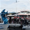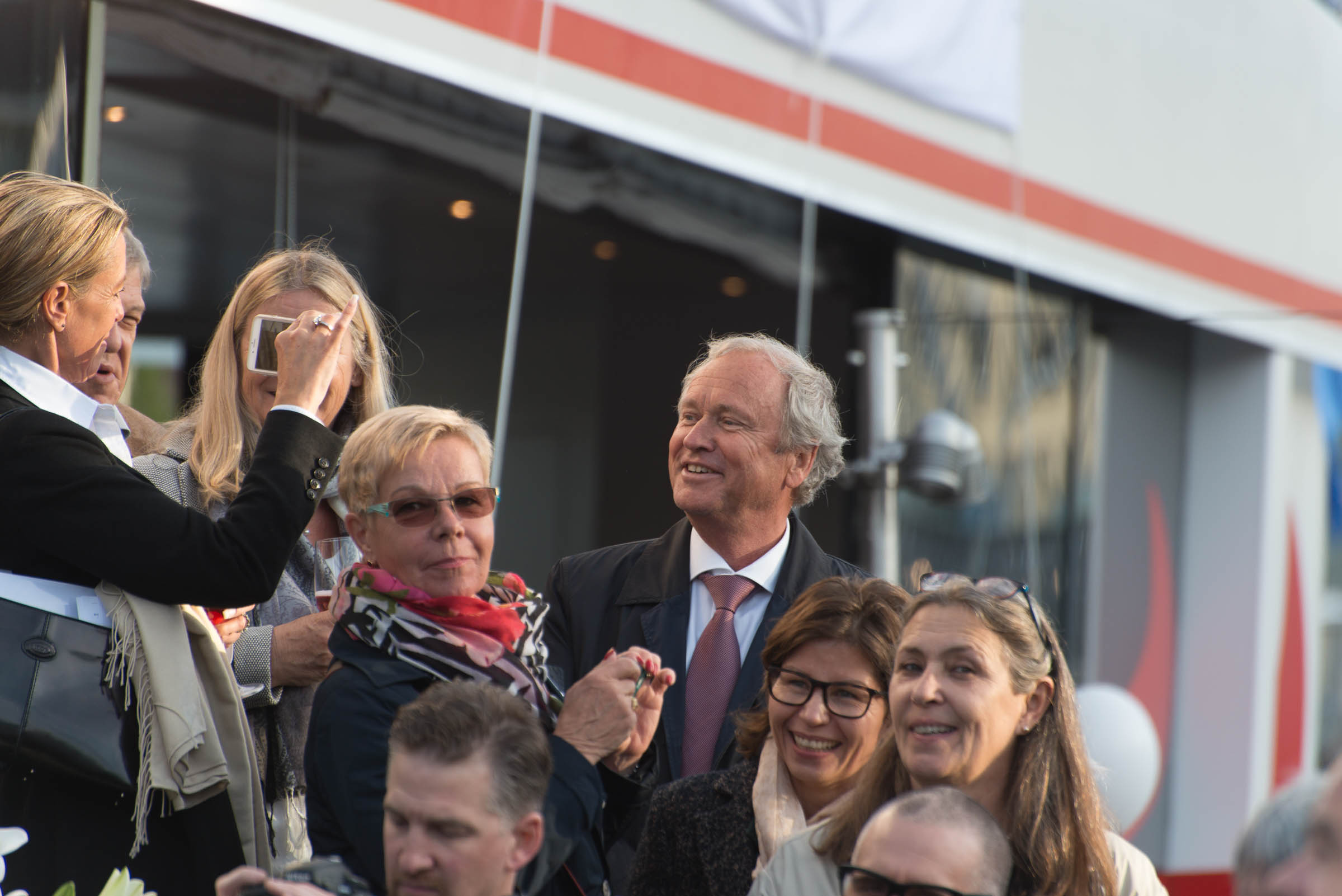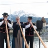 Einige bohren noch schnell in der Nase rum. Im Hintergrund steht das neu Motorschiff am Steg der SNG - St. Niklausen Schiffgesellschaft. Heute Abend wird das bestgehütete Namens-Geheimnis auf dem Vierwaldstätersse enthüllt. Die Ex-Ski-Rennfahrerin, Dominique Gisin, darf das Schiff taufen und den zahlreichen Gästen den Namen präsentieren.